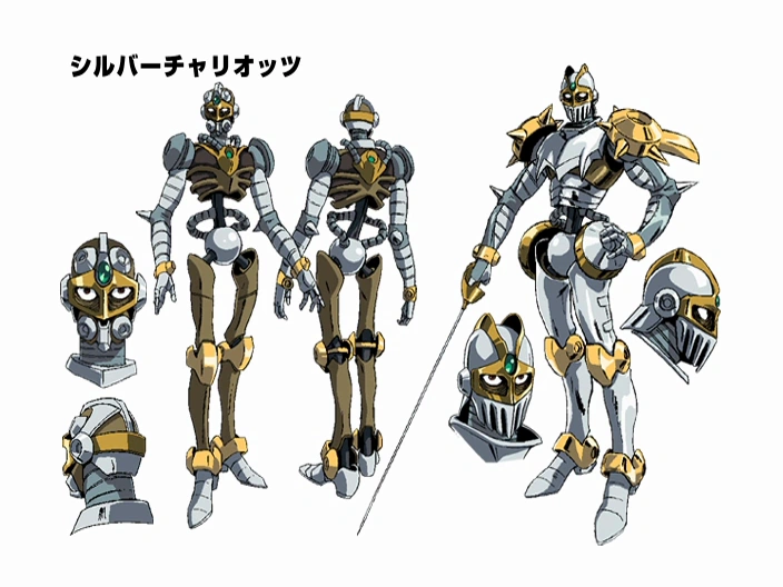 Silver Chariot is the stand of Polnareff. It is a close range stand and it was first introduced in Stardust Crusaders. Silver Chariot is very agile, but it has no great damage. When it abandons its armor, its speed increases even further. Polnareff also uses its sword as a projectile to catch the enemy off guard.. Unlike most Stands, whose users can see through their eyes, Polnareff has no such ability, due to Silver Chariot's armor. If necessary, Polnareff can also shed Silver Chariot's armor away, exposing its robotic form. In this form, Silver Chariot is even faster, to the point that it appears to create up to eight doubles of itself.. Silver Chariot is an incredibly quick Stand, as it is able to appear in multiple places at once, due to moving at a speed faster than the human eye can process and creating illusory afterimages. However, Silver Chariot is weighed down by its armor and needs to shed it to reach its full speed. Its speed is high enough that it's able to deflect bullets shot at a point-blank range, deflect lasers .... Armor: Silver Chariot's oddest property is that it is clad in a heavy suit of silver armor. The armor lowers its speed, but also prevents it from being injured, as the user does not receive the same injuries that the armor does as long as it's donned. The armor is shown to be capable of withstanding extreme heat without melting.. Silver Chariot is seen holding 2 rapiers in the opening, JoJo Sono Chi no Kioku ~end of THE WORLD~. This is likely a reference to its possession by Anubis. Alternatively, this could be a reference to Silver Chariot having a short sword replacing its right hand in Golden Wind. Silver Chariot's rapier closely resembles an épée, a smaller and ....